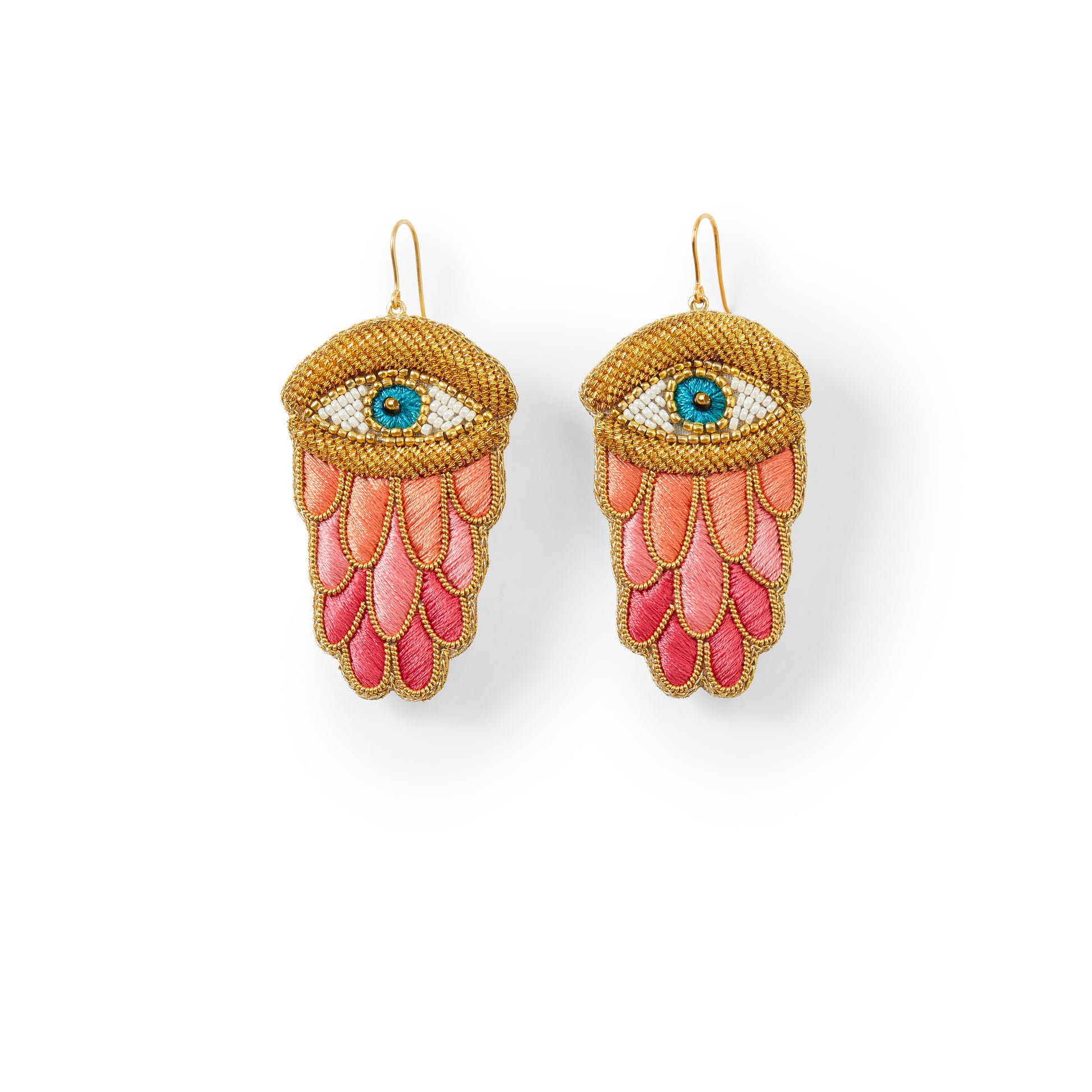 Materials: Ethically sourced 18k gold-plated silver hook, Gold pearl purI, Gold bullion, silk threads and Italian gold leather backing.